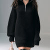 The ElevenOra Chic Casual Black Stand Collar Zipper-Front Long Lantern Sleeve Oversized Fuzzy Knit Warm Mini Dress is a wardrobe essential for those seeking comfort without compromising on style. Its unique design elements and cozy material make it a perfect addition to your seasonal wardrobe.