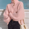ElevenOra Chic Casual Pink Turtleneck Button Details Long Sleeve Oversized Fuzzy Knit Sweater
