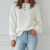 ElevenOra Chic Casual White Round Collar Botton Loose Long-sleeved Knit Pullover Sweater