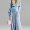 The ElevenOra Chic Elegant Baby Blue Deep V-Neck Long Sleeve Patch Pocket Oversized Fuzzy Knit Wide-Leg Jumpsuit is the epitome of comfort meets style. Showcasing a luxurious, soothing baby blue hue, this jumpsuit is designed to turn heads while keeping you cozy. Its deep V-neck gives it an elegant touch, perfect for showcasing your favorite necklace or simply adding a hint of allure.