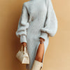 The ElevenOra Chic Elegant Light Gray Round Neck Long Lantern Sleeve Loose Slit Ribbed Knit Midi Dress is a sophisticated and fashionable piece that combines modern style with timeless elegance. Crafted from a soft, ribbed knit fabric, this midi dress offers both comfort and a flattering silhouette that suits various body types.