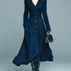 ElevenOra Chic Elegant Royal Blue V-Neck Single-Breasted Long Sleeve Slim Fit Fuzzy Knit Flared Hem Maxi Dress