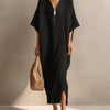 ElevenOra Chic Elegant Black Zipper-Up V-Neck Short-Sleeve Oversized Side-Slit Knit Maxi Dress