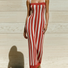ElevenOra Stylish Elegant Red-White Striped Strappy Sleeveless Slim-Fit Ribbed Knit Maxi Dress