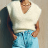 ElevenOra Chic Elegant Cream White V-Neck Sleeveless Puffy Shoulder Fuzzy Knit Tank Top