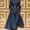 ElevenOra Chic Casual Navy Blue Cotton Blend Stand Collar Single Breasted Utility Pocket Belted Maxi Dress Coat