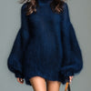 The ElevenOra Chic Elegant Navy Mock Neck Oversized Long Lantern Sleeve Mohair Knit Mini Dress is a must-have addition to any fashion-forward wardrobe. Its unique design, luxurious fabric, and versatile styling options make it an ideal choice for anyone looking to make a sophisticated and stylish impression.