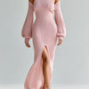 ElevenOra Chic Elegant Off-Shoulder Turtleneck Long Balloon Sleeve High Slit Knitted Maxi Dress