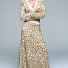 ElevenOra Chic Vintage Leopard Jacquard V-Neck Slim-Fit Long-sleeve Sweater Elastic Waist Maxi Skirt Knit Two-piece Set