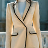 ElevenOra Vintage Elegant Wool Blend Notched Collar Single Breasted Contrast Trim Tailored Waist Blazer