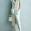 ElevenOra Chic Elegant Cream White Shawl Collar Single-Breasted Sleeveless Patch Pocket Oversize Fuzzy Knit Midi Dress