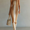 ElevenOra Chic Holiday Camel-Beige Vertical Stripe Camisole Slim-Fit Openwork Knit Midi Dress