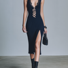 The ElevenOra Black V-neck Lace Sleeveless Slim-Fit Side-Slit Rib-Knit Midi Dress is a must-have staple for any wardrobe. Its elegant design and versatile styling options make it perfect for both sophisticated events and casual outings, ensuring you look effortlessly stylish on any occasion.