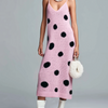 ElevenOra Stylish Elegant Pink Polka Dot V-Neck Strappy Loose Ribbed Knit Midi Dress