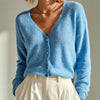 ElevenOra Casual Basic Blue Deep V-Neck Single-Breasted Slouchy Knit Cardigan