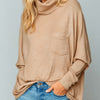 ElevenOra Casual Chic Camel Cowl Neck Single-Pocket Slouchy Batwing Sleeve Knit Sweater