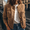 ElevenOra Casual Chic Camel Crew Neck Gold Button Multi-Pocket Cropped Knit Cardigan