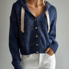 ElevenOra Casual Chic Navy Hooded Single-Breasted Cropped Knitted Cardigan