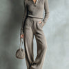 ElevenOra Casual Elegant Polo Collar Long-sleeved Slim-fit Sweater Wide-leg Pants Ribbed Knit Two-piece Set