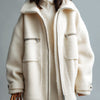 ElevenOra casual Faux Lambswool Lapel Zipper Front Multi-pocket Oversized Warm Coat