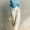 ElevenOra Chic Baby Blue Mock Neck Button-Front Slim-Fit Long Sleeve Top Wide-Leg Pants Ribbed Knit Two-Piece Set