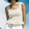 ElevenOra Chic Casual Blue Square Neck Sleeveless Pleated Hem Slim-Fit Ribbed Fuzzy Knit Tank Top