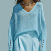 ElevenOra Chic Casual Blue V-Neck Long Sleeve Button Oversized Ribbed Knit Sweater