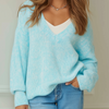 ElevenOra Chic Casual Blue V-Neck Long Sleeve Oversized Ribbed Knit Sweater