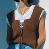 ElevenOra Chic Casual Brown Square Neck Lace-Up Details Loose-Fit Knit Vest
