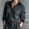 ElevenOra Chic Casual Dark Grey Polo Collar Botton Velvet Loose Long-sleeved Knit Pullover Sweater