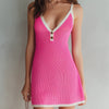 ElevenOra Chic Casual Hot Pink-White Colorblock Strappy Deep V-Neck Sleeveless Button-Front A-Line Knit Mini Dress