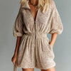 ElevenOra Chic Casual Light Camel Zipper-Up Lapel Collar Short-Sleeve Tailored Waist Loose Fit Knit Romper