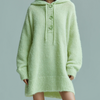 ElevenOra Chic Casual Light Green Hooded Drawstring Botton Oversized Long Sleeve Knit Mini Dress