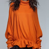 ElevenOra Chic Casual Orange Turtleneck Batwing Sleeve Ruffled Hem Oversized Knit Top