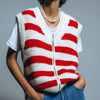ElevenOra Chic Casual Red White Stripes V-Neck Zipper-Front Oversize Knit Vest