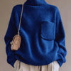 ElevenOra Chic Casual Royal Blue Turtleneck Patch Pocket Long-Sleeve Oversized Knit Sweater Top
