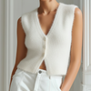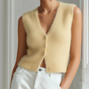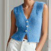 ElevenOra Chic Casual V-Neck Single-Breasted Sleeveless Fit Fuzzy Mohair Knit Vest