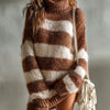 ElevenOra Chic Cozy Contrast Striped Turtleneck Long-sleeved Oversized Mohair Knit Mini Dress