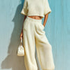 This two-piece set works beautifully as a standalone statement, perfect for casual outings or relaxed gatherings. Pair it with minimalist sneakers for a laid-back look or elevate it with ankle boots for a chic appearance. The neutral cream color gives you the flexibility to accessorize with bold jewelry or vibrant scarves to add a pop of color.