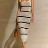 ElevenOra Chic Elegant Beige Striped Strappy Sleeveless Slim-Fit Ribbed Knit Midi Dress