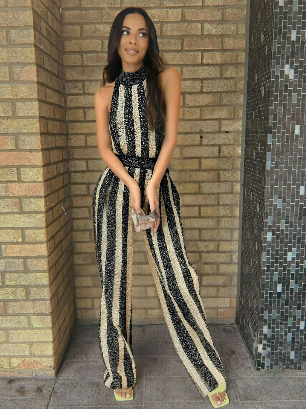 Obsessed with this jumpsuit! The black-beige stripes are so sophisticated, and the ribbed knit feels luxe. Wore it to a dinner party last night and got so many compliments—total head-turner! ✨