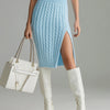 ElevenOra Chic Elegant Blue High Waist Slit Slim-Fit Cable-Knit Midi Pencil Skirt