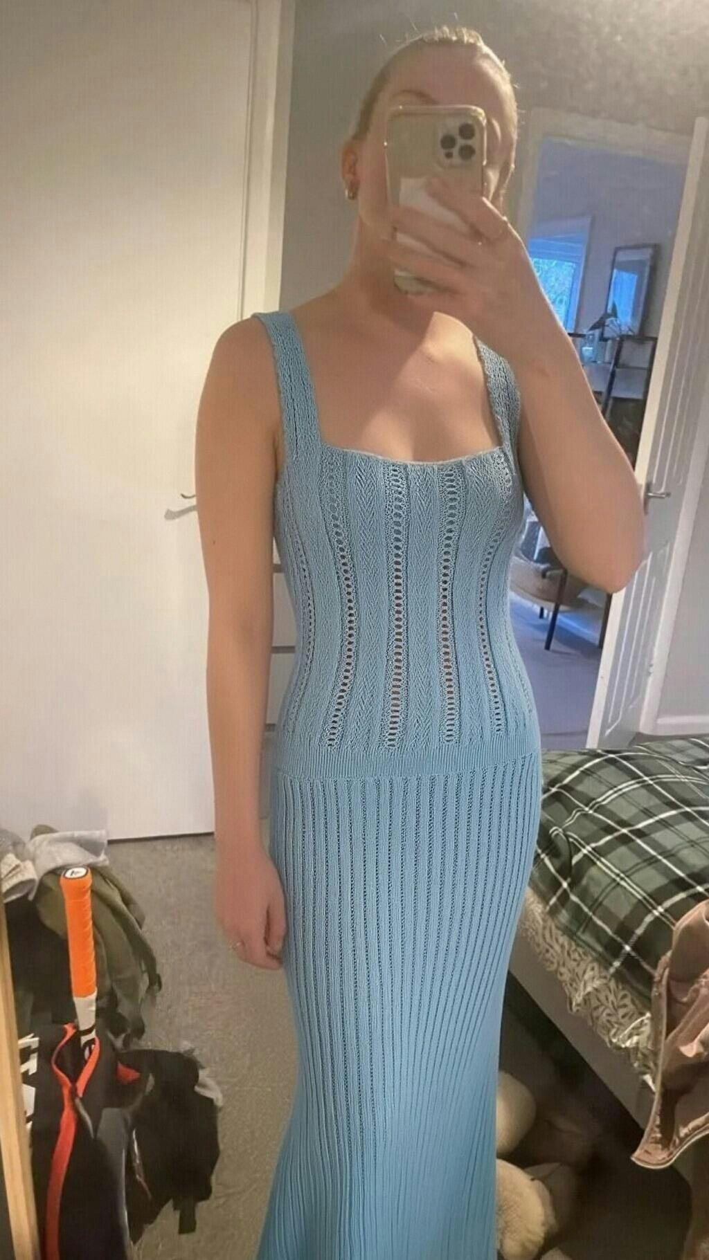 This blue dress is stunning, perfect for vacation vibes.