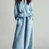 ElevenOra Chic Elegant Blue Stand Collar V Neck Long Sleeve Loose Sweater Patch Pocket Maxi Skirt Fuzzy Knit Two-Piece Set