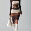 ElevenOra Chic Elegant Colorblock Turtle Neck Belted Long Sleeve Bodycon Knit Midi Dress