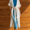 ElevenOra Chic Elegant Cream White Collarless Short-Sleeve Loose-Fit Belted Mohair Knit Long Cardigan