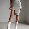 ElevenOra Chic Elegant Gray Double-Breasted Detail Slit Slim-Fit Ribbed Knit Mini Pencil Skirt