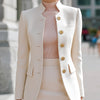 ElevenOra Chic Elegant Ivory Wool-blend Stand-collar Single-breasted Slim-fit Blazer