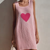 ElevenOra Chic Elegant Pink Square Neck Sleeveless Heart Jacquard Loose-Fit Knit Mini Dress