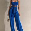 ElevenOra Chic Elegant Royal Blue Strappy Sleeveless Slim-Fit Camisole Tie-Waist Wide-Leg Pants Knit Two-Piece Set